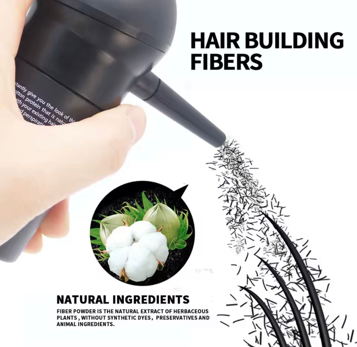 Fiber powder is made from a natural extract of herbaceous plants, with no synthetic dyes, no added preservatives, and no animal-derived ingredients. Designed as a hair-building fiber, it is applied directly where you want extra visual density, helping create the look of fuller, more defined hair in seconds. The lightweight fibers blend in for a natural-looking finish, making quick touch-ups simple at home or on the go.