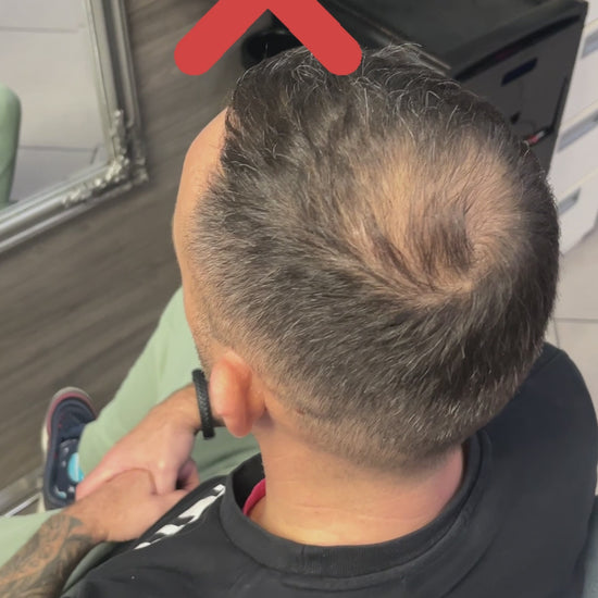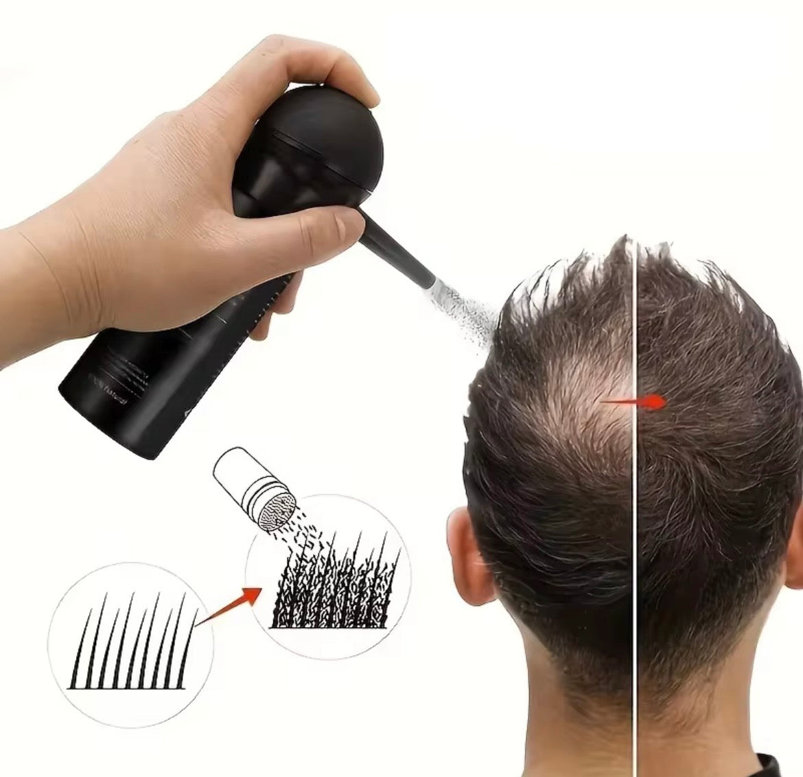- (If purchased as a set containing a comb) While spraying, use the comb to blend the fibres into the natural hairline, making it look seamless.